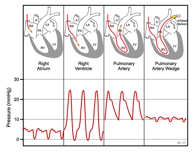 In 1970 two doctors, Swan & Ganz recognised the need to modify existing radiology catheters used for imaging the pulmonary artery. Their modification consisted of the addition of an inflatable balloon at the catheter tip. When introduced into the central venous circulation, it would be carried through the right atrium, ventrical and outflow tract into a small pulmonary artery. This obviated the need for radiologic control and enabled the catheter to be placed in patients in a variety of clinical settings.